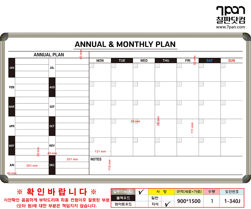 일정을 정리할때, 한쪽에서는 연간 큰 그림을 보고 싶고, 또 다란 한쪽에서는 이번 달의 세부 일정을 꼼꼼히 챙기고 싶을 때가 많습니다. 그런데 화이트보드를 판매하는 업체들을 보면 보통 연간/월간 계획표를 따로 판매하는 경우가 많습니다.